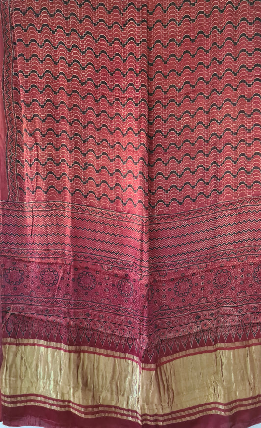 HANDWOVEN Maroon modal silk with Ajrak prints