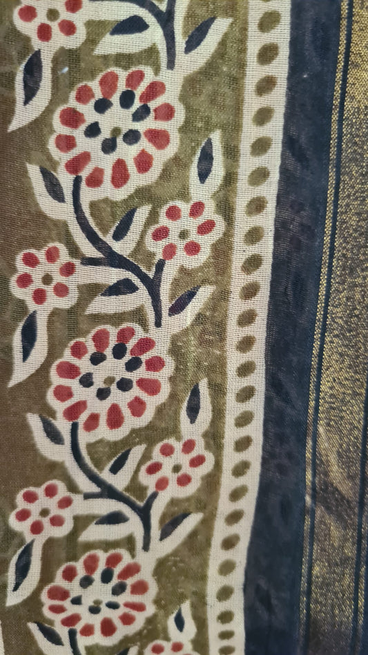 HANDWOVEN Chanderi Ajrak in Green and Black