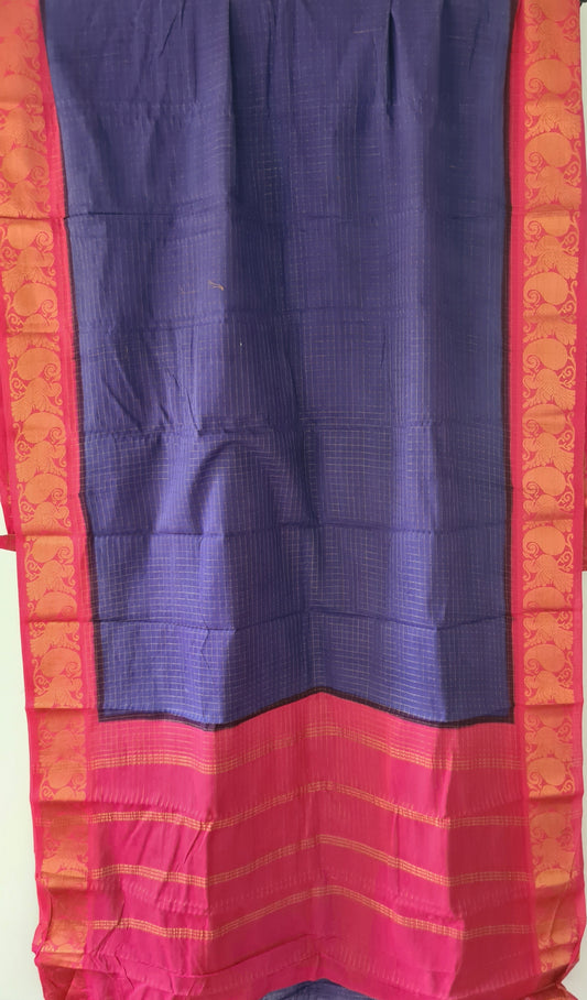 HANDWOVEN Sungudi cotton in Blue with lavender border
