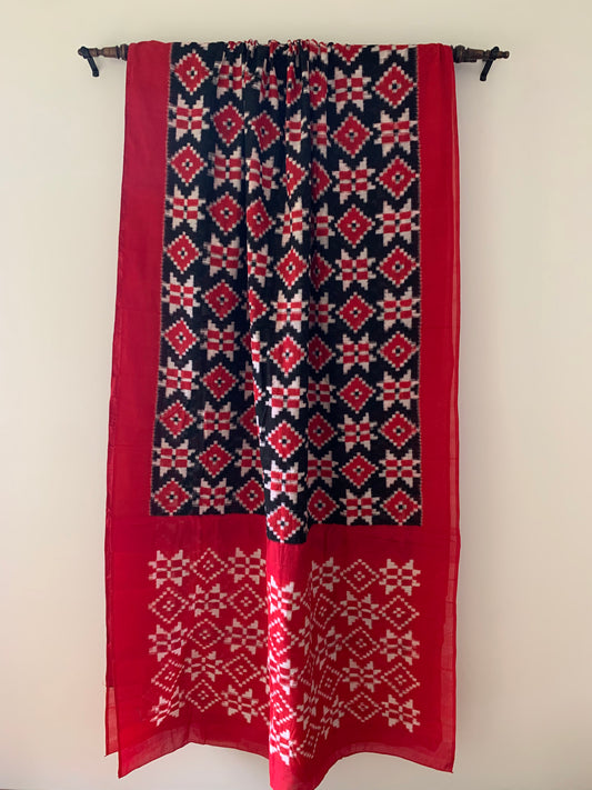 HANDWOVEN Ikat TELIA rumal cotton in black & red
