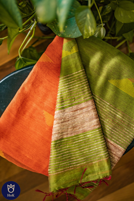 HANDWOVEN - Bengal Cotton in Orange & Green