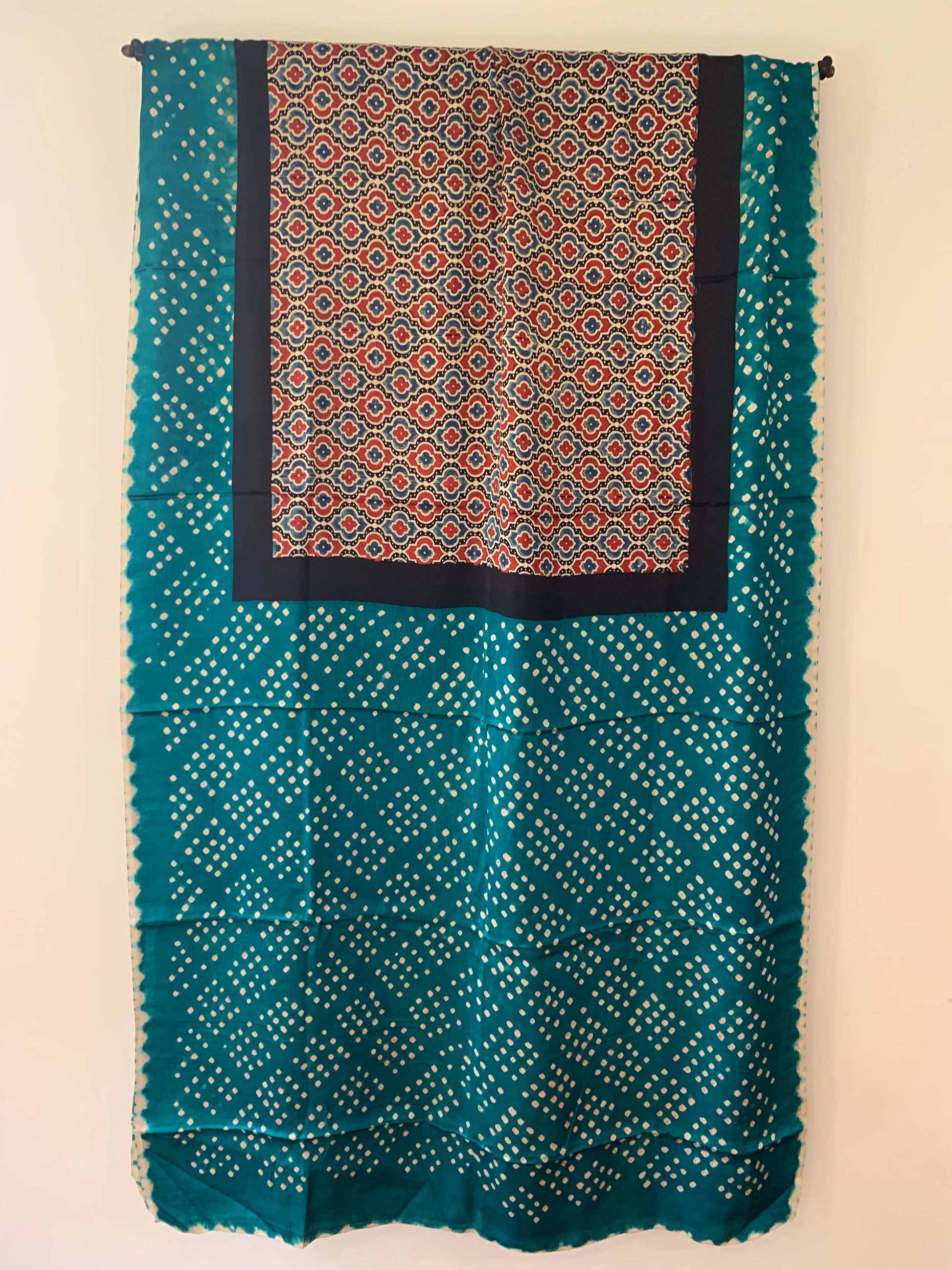 Techniques - Rama Green Bandhani pallu & Ajrak body