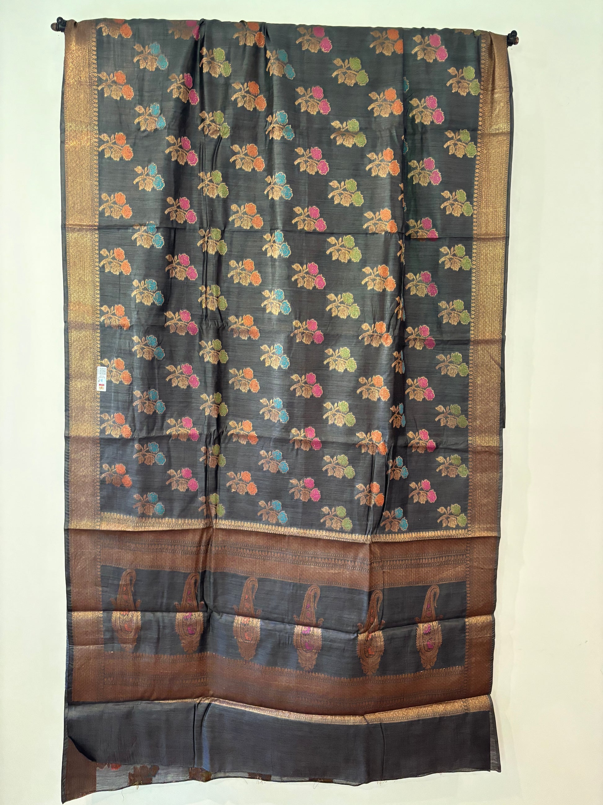 Handwoven Banarasi saree with meenakari motifs