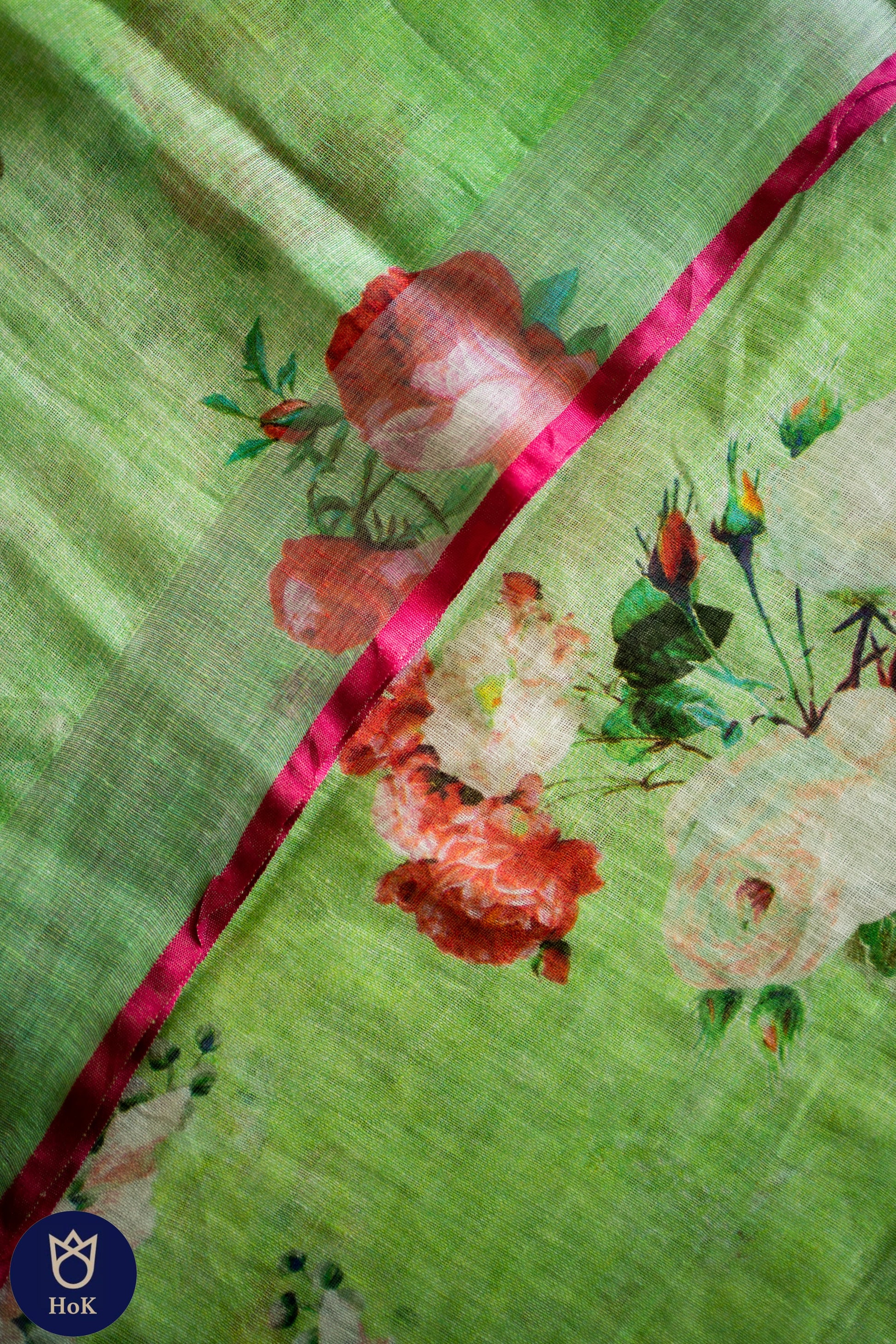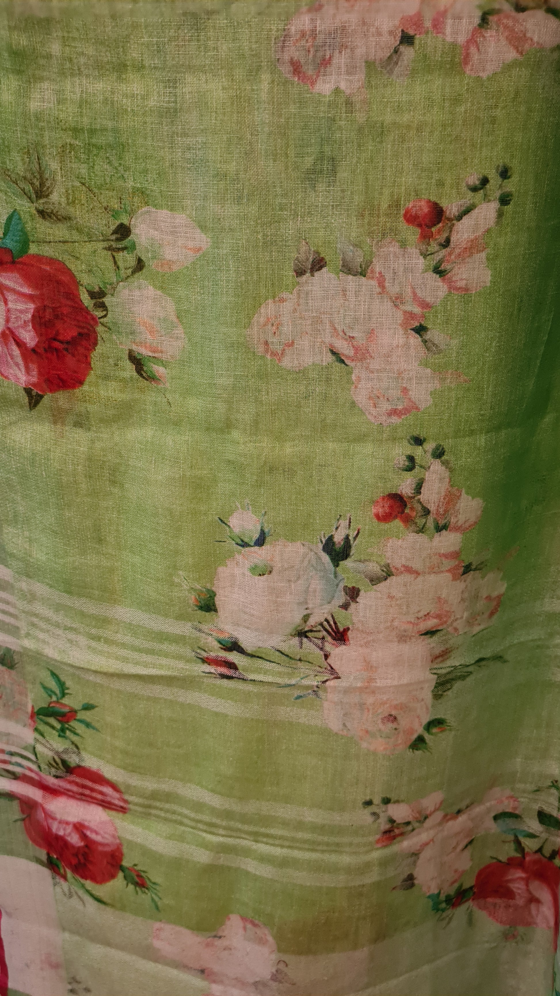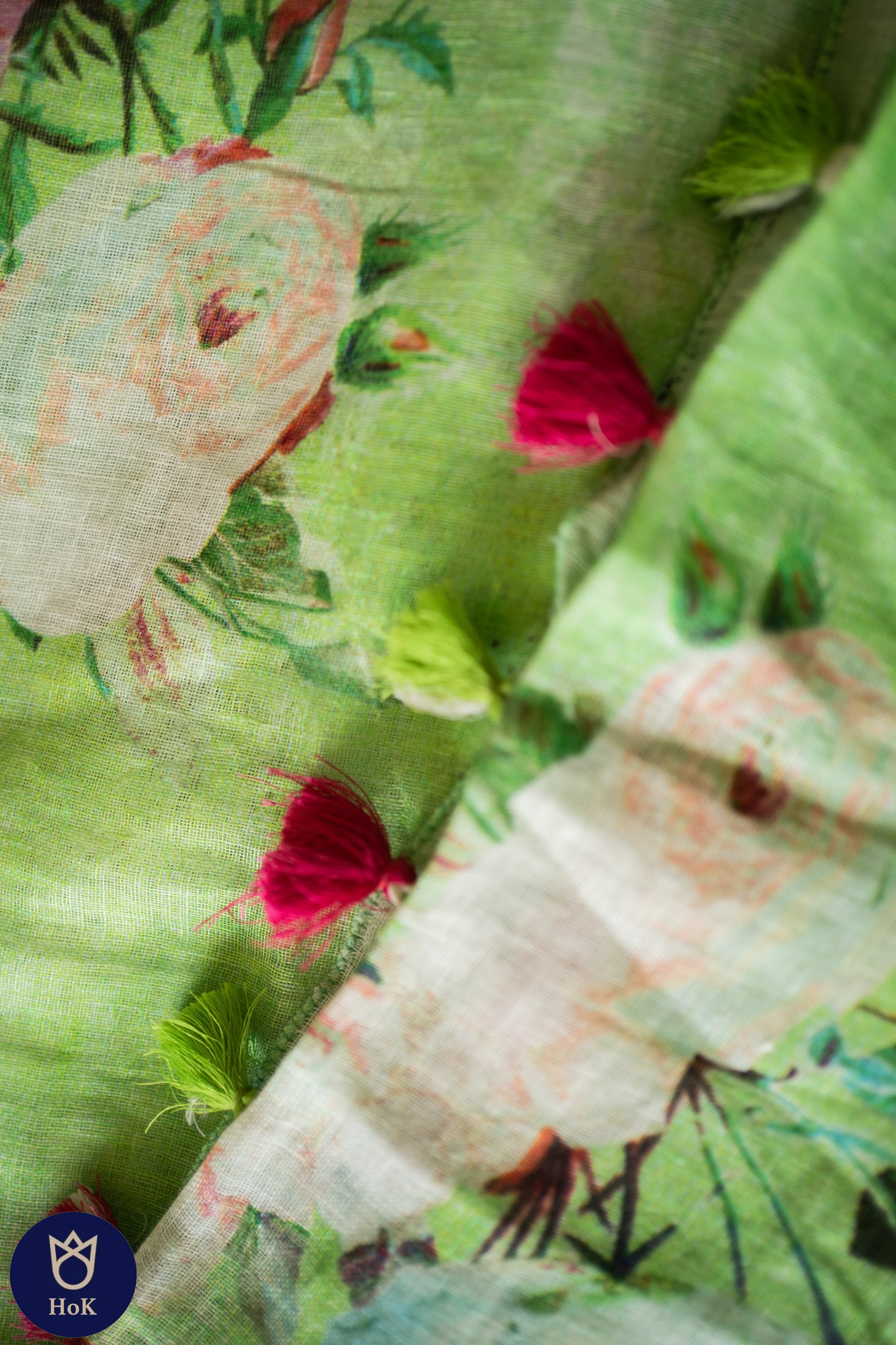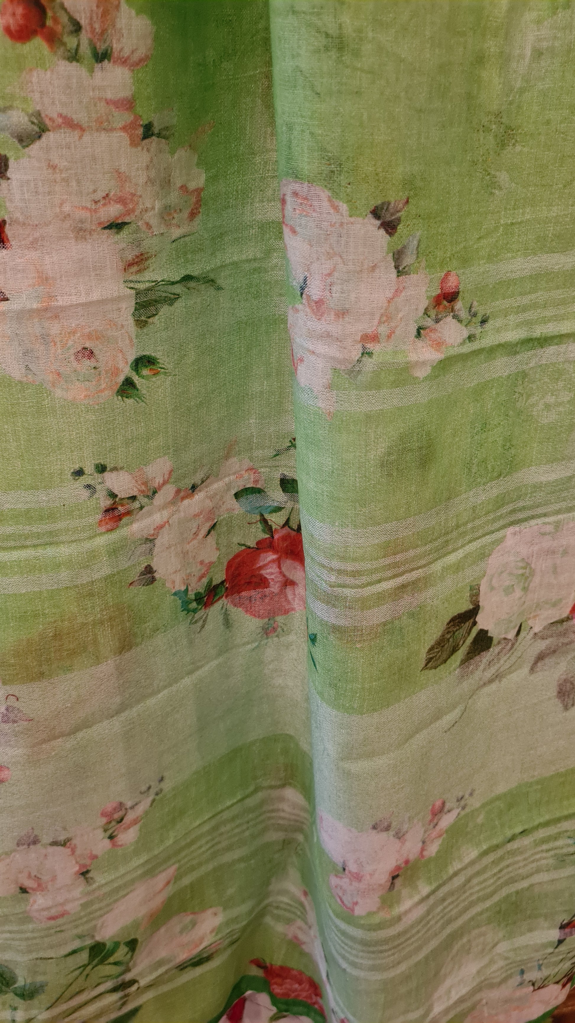 HANDWOVEN green floral Linen Saree