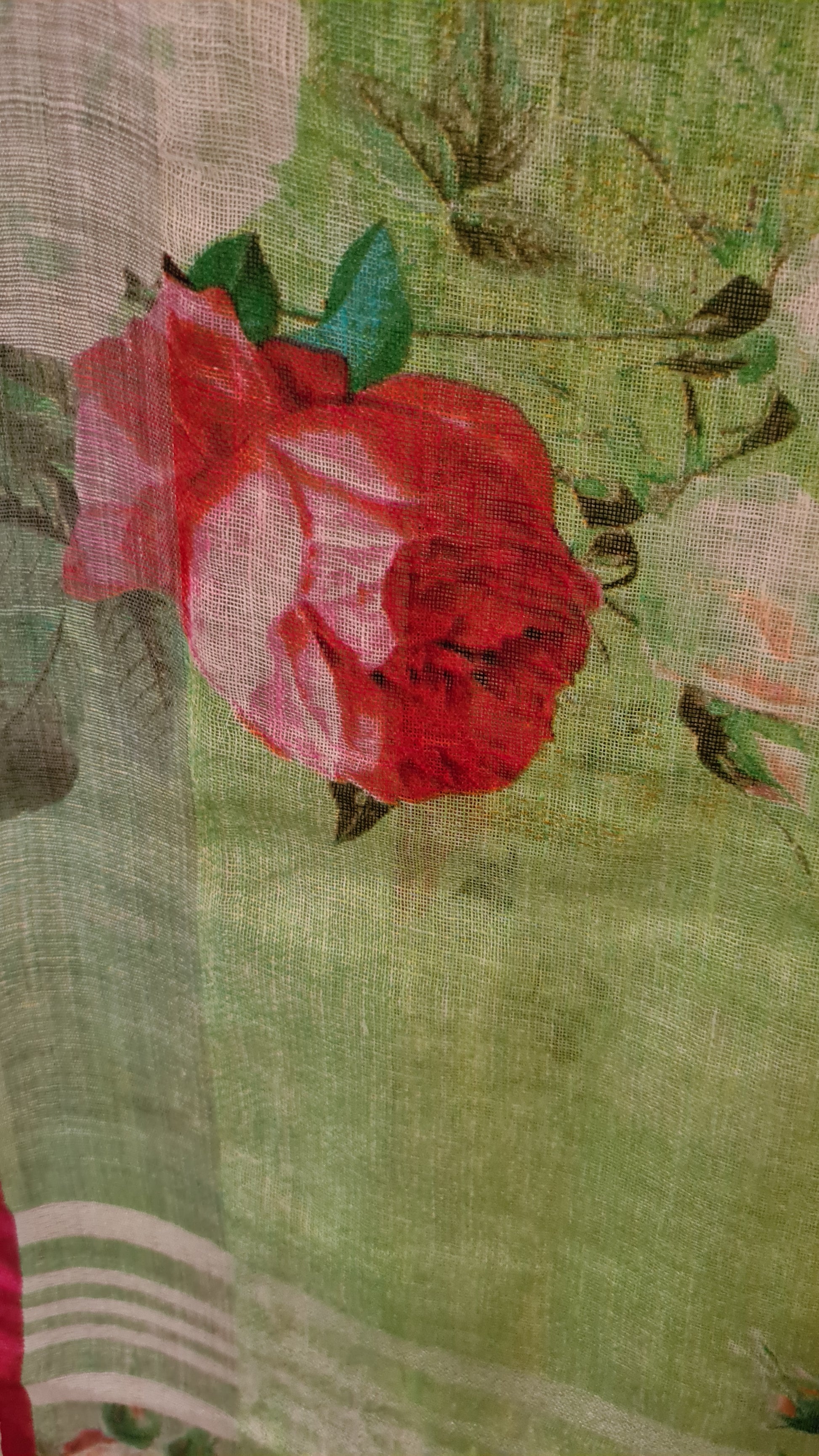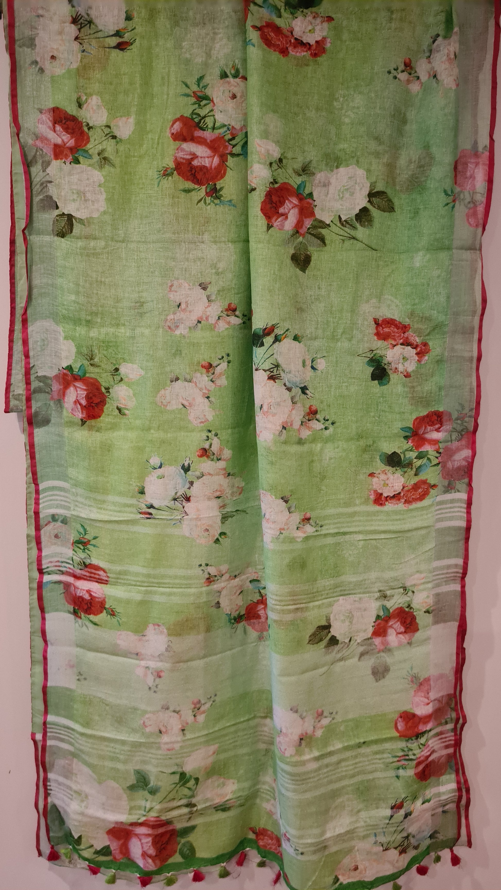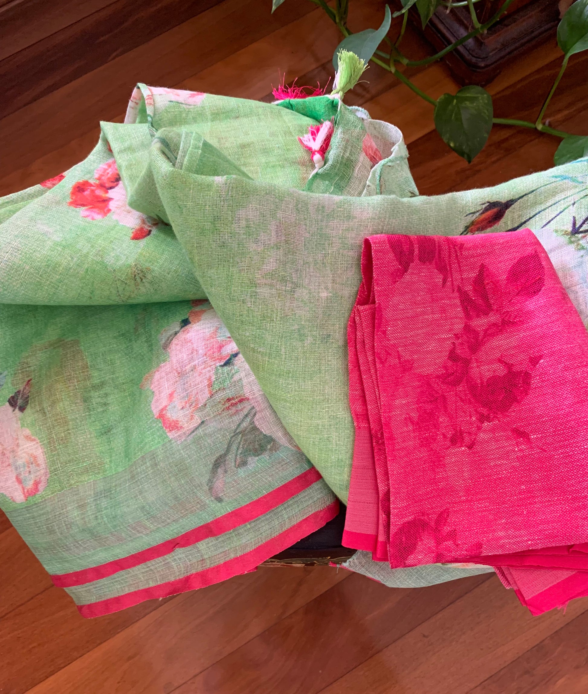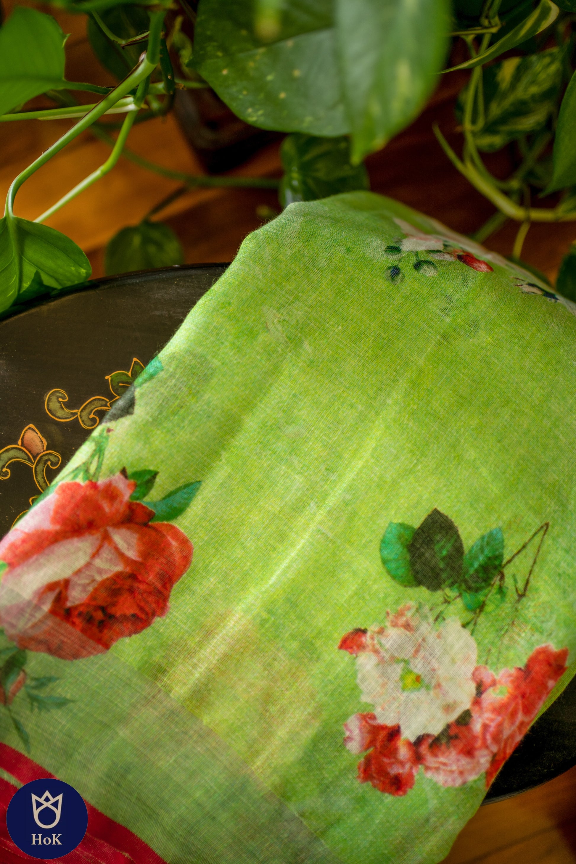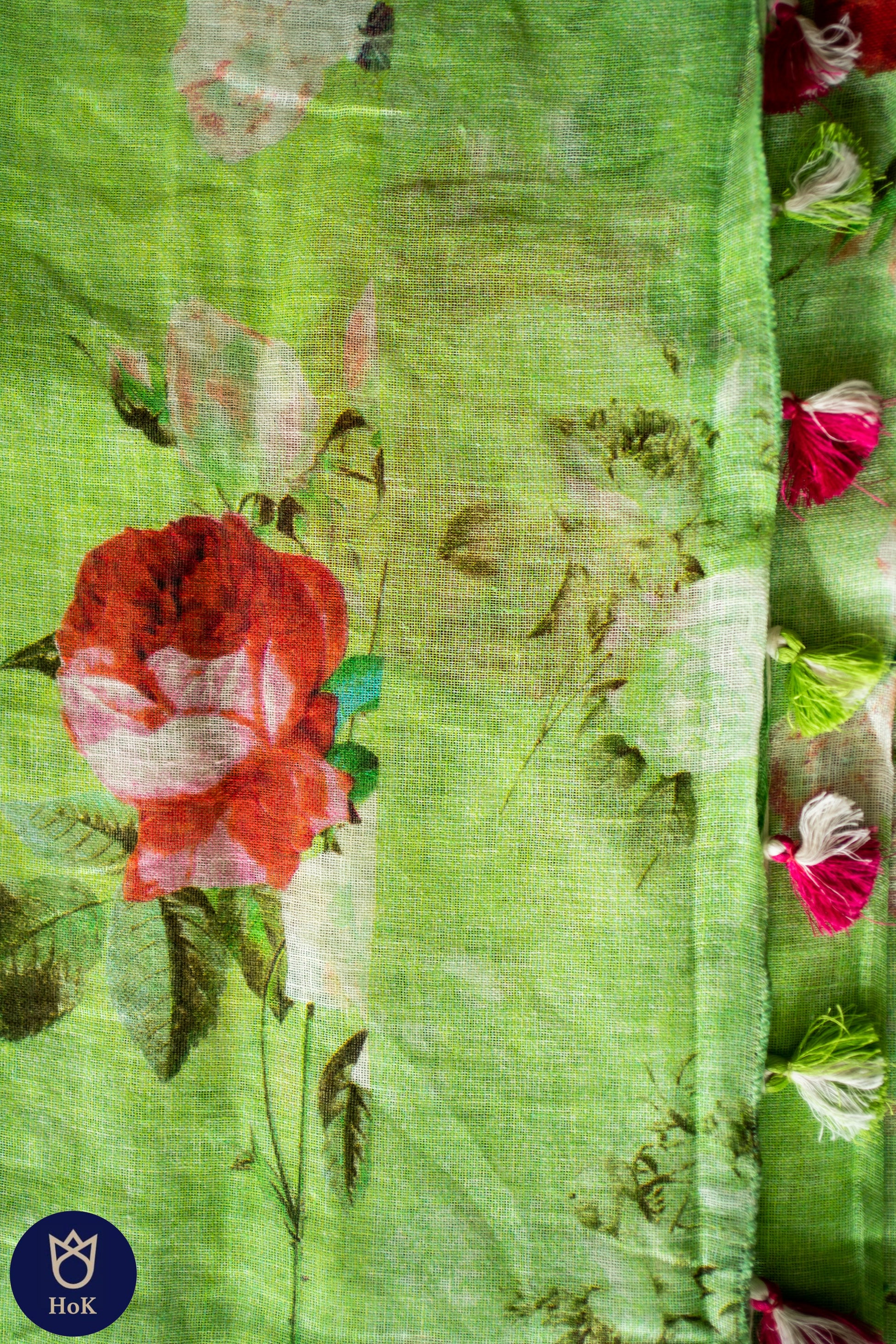 HANDWOVEN green floral Linen Saree