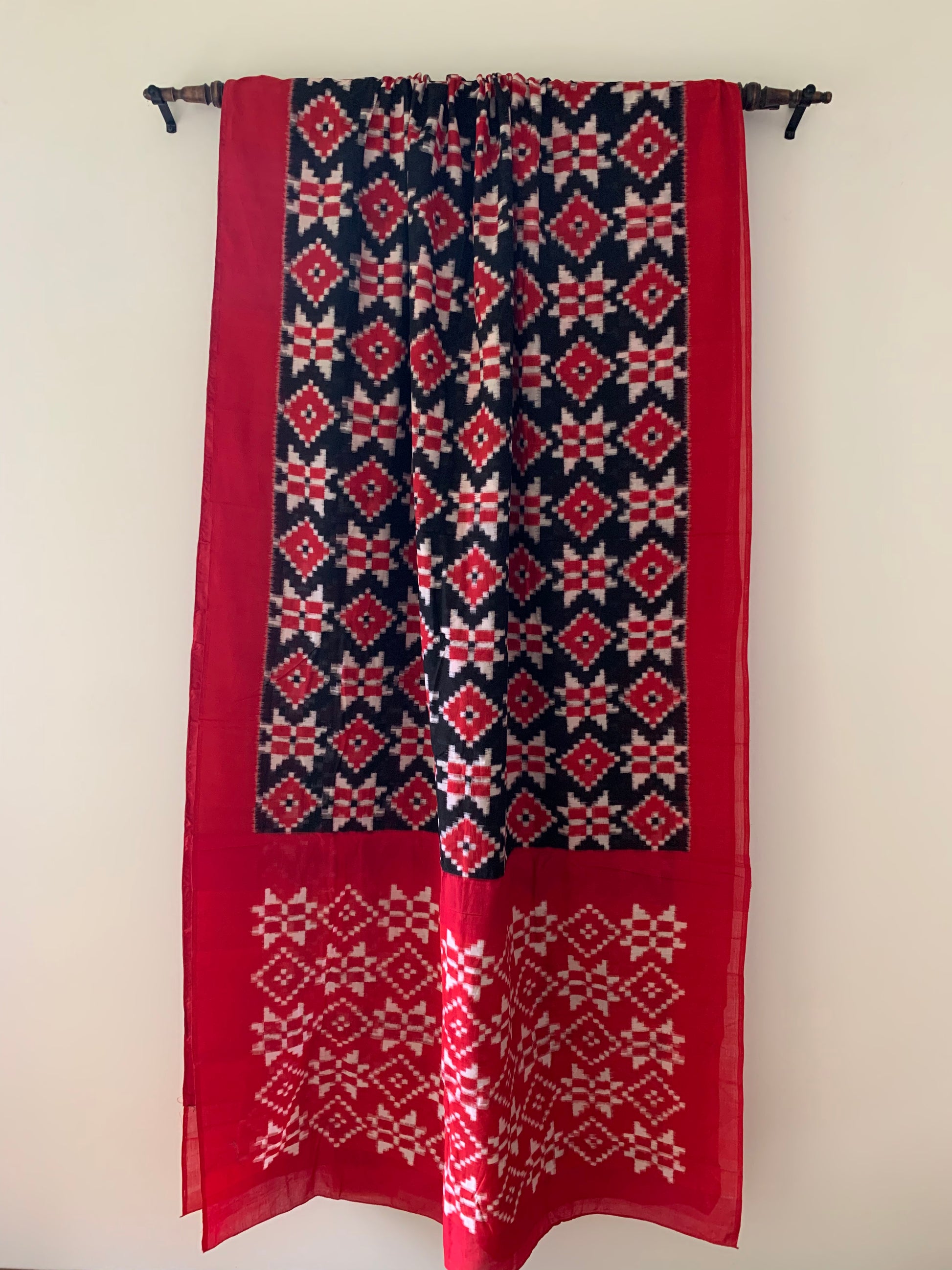 HANDWOVEN Ikat TELIA rumal cotton in black & red