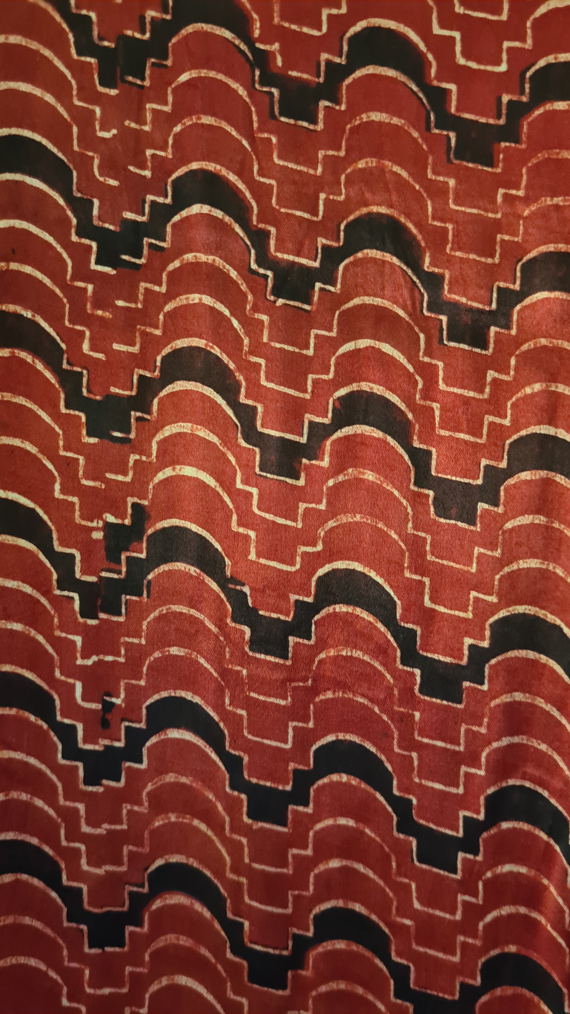 HANDWOVEN Maroon modal silk with Ajrak prints