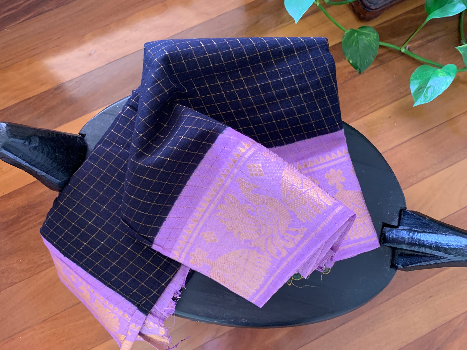 HANDWOVEN Sungudi cotton in Blue with lavender border