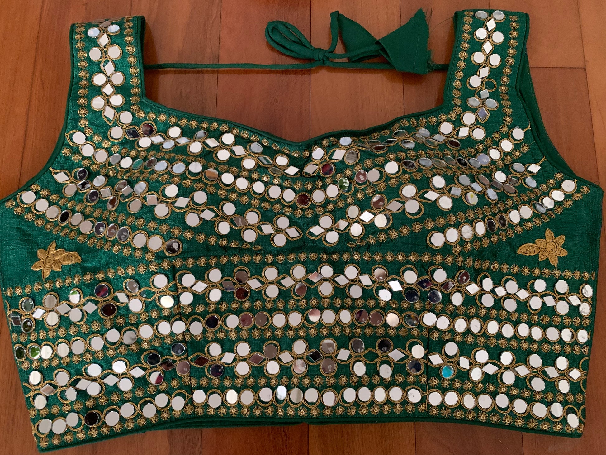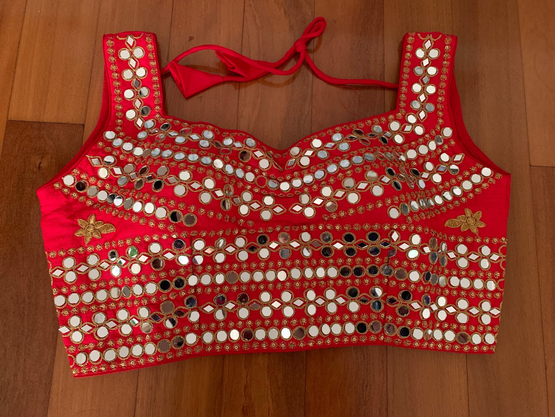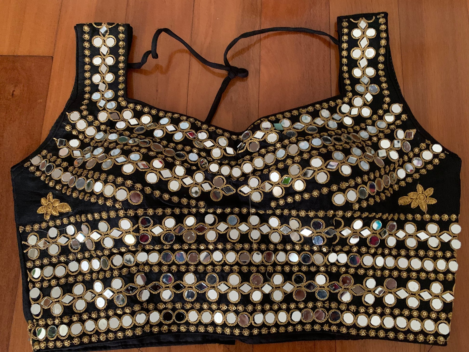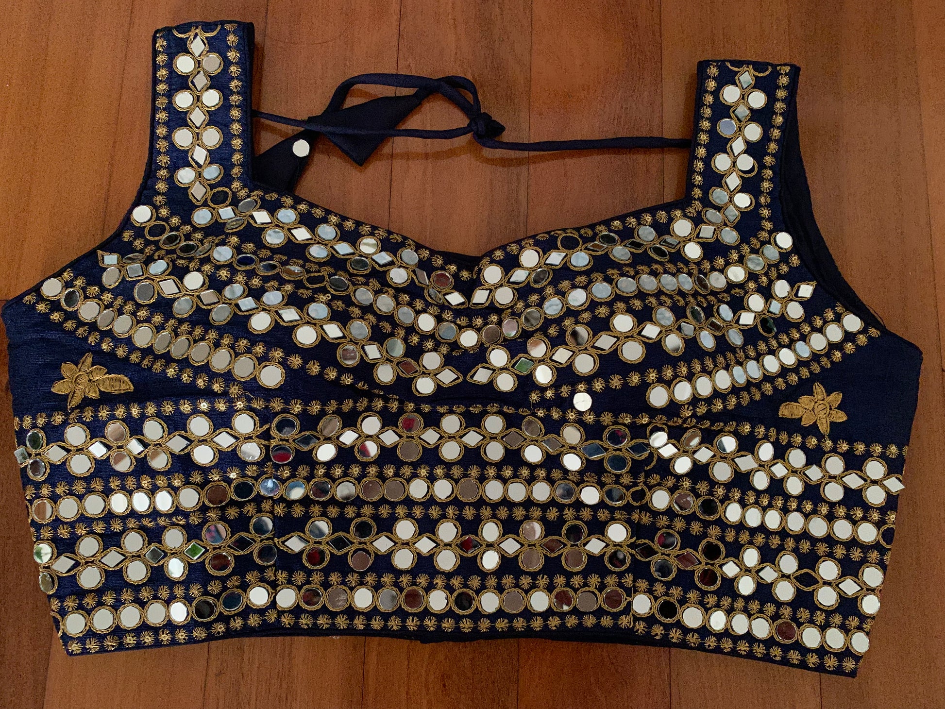 Mirror work done all over the blouse