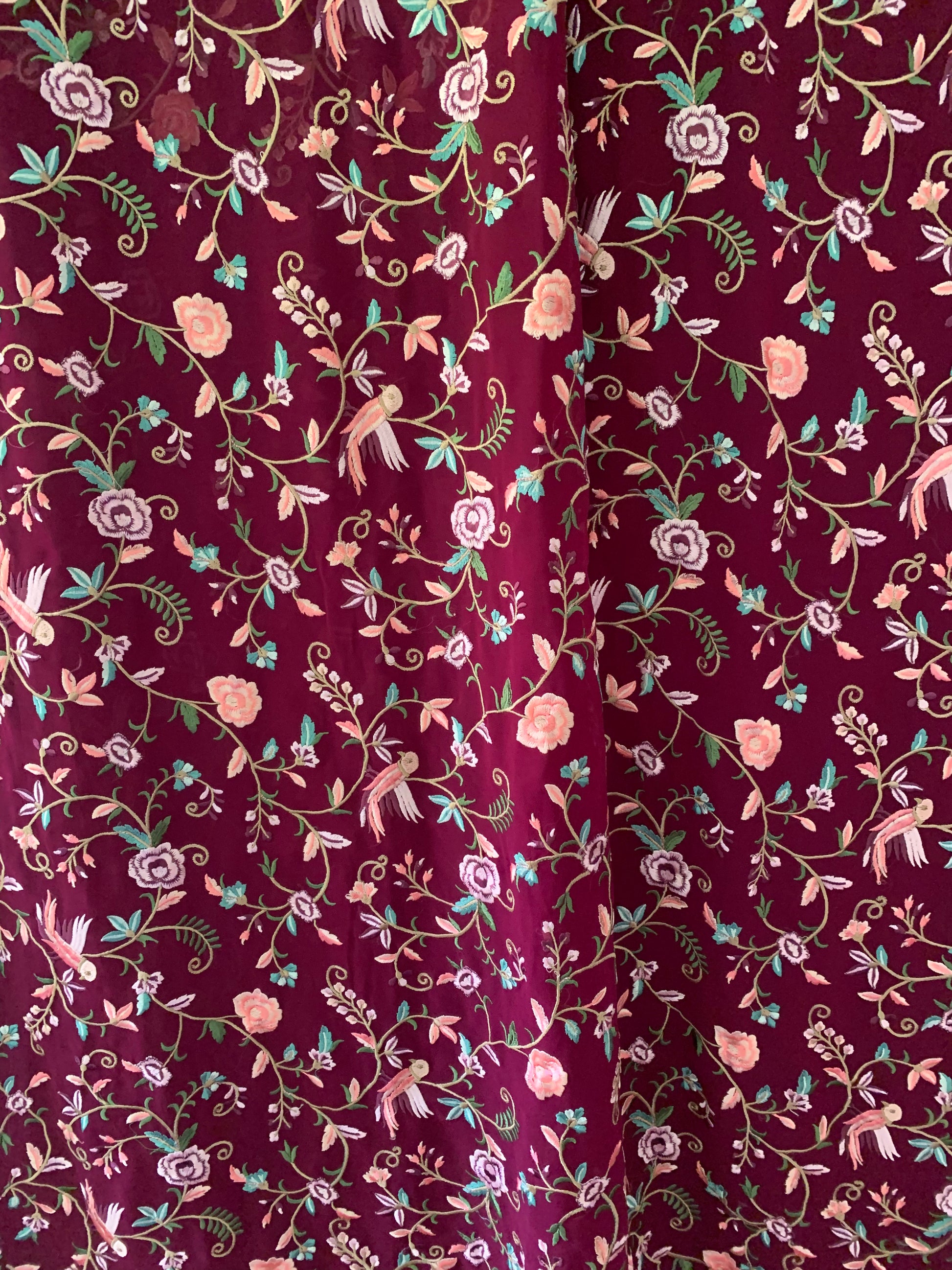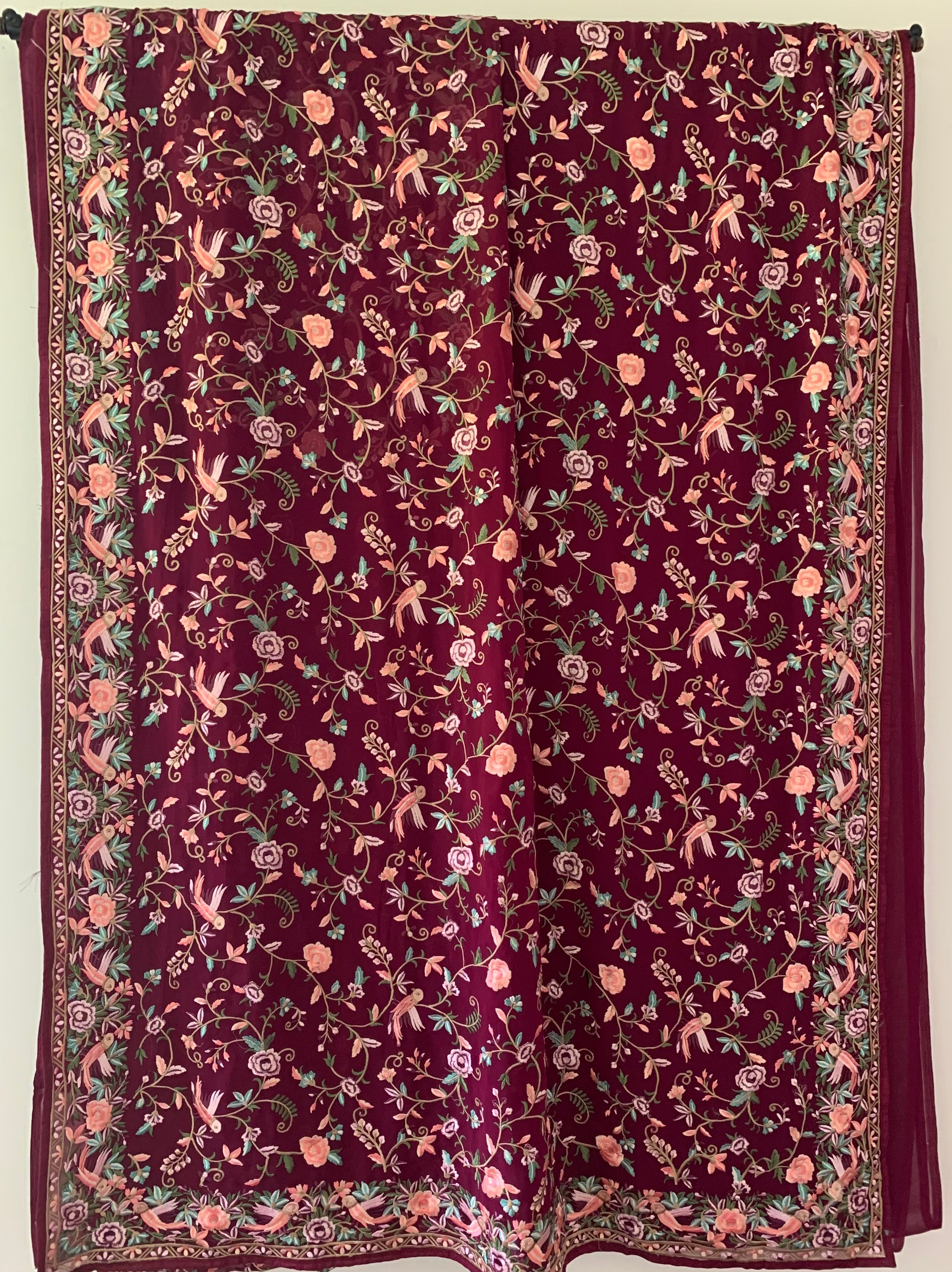 Parsi Gara inspired embroidery saree in Maroon