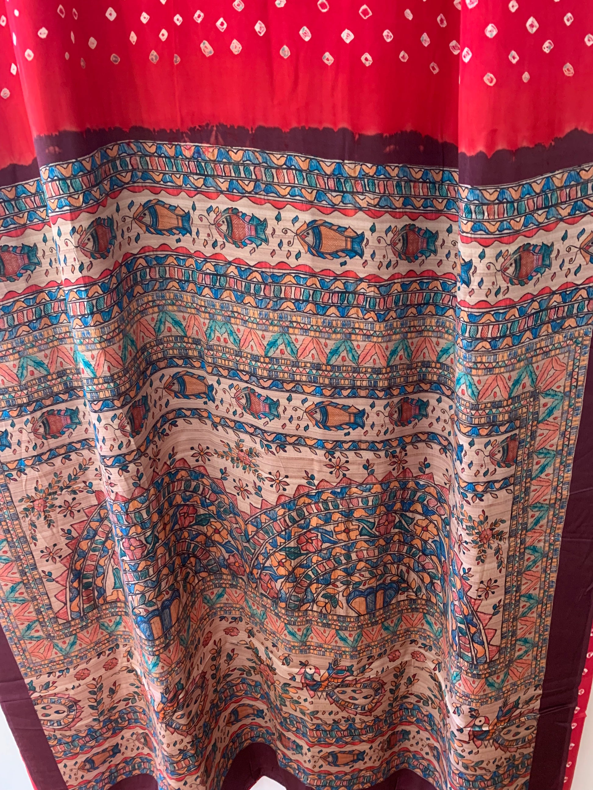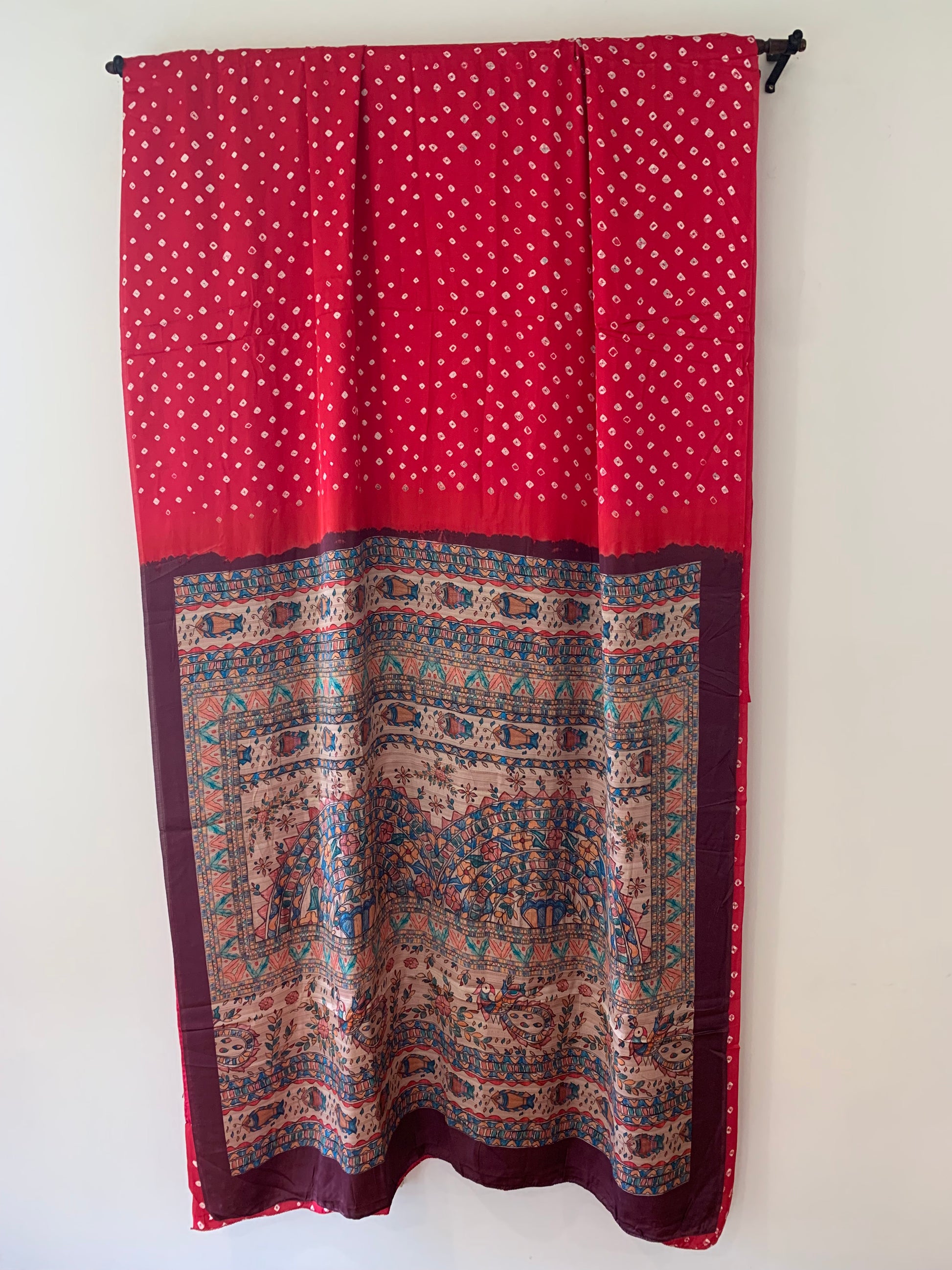 Technique - Bandhani body with hand painted Madhubani Pallu