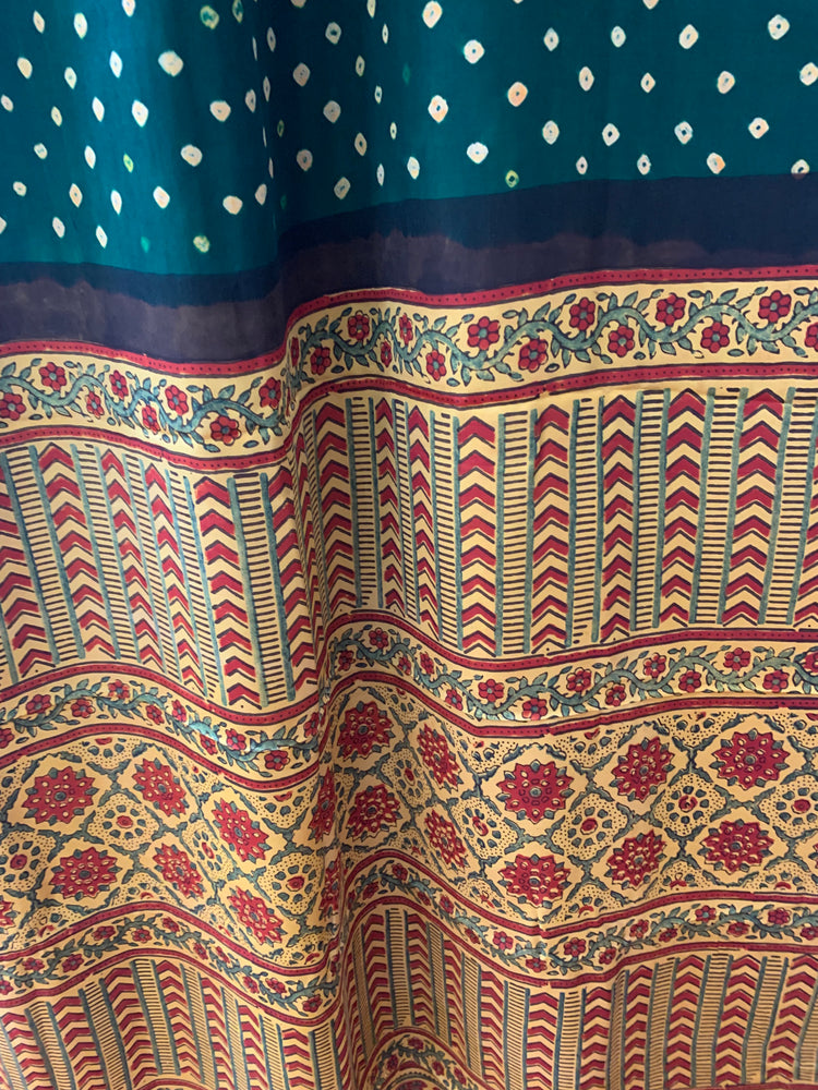 Green Bandhani Body with Ajrak Pallu & Blouse